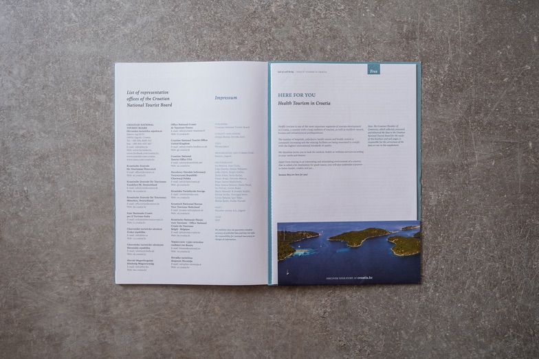 As part of a broader project of the Croatian Tourist Board, the Design Bureau Izvorka Jurić team designed a brochure on health tourism in Croatia. This marked the beginning of a successful collaboration in this specific and demanding tourism segment.