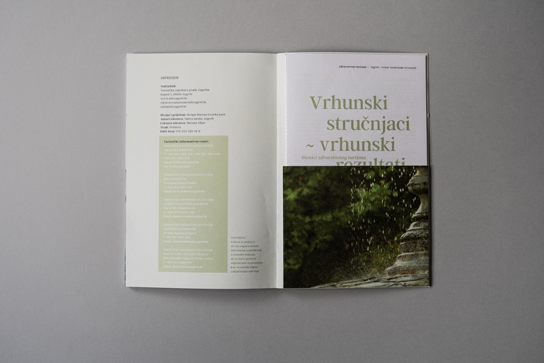 Design Bureau Izvorka Jurić designed promotional materials and a brochure on health tourism in Zagreb and its surroundings for the Zagreb Tourist Board. The brochure has been translated into four languages and presented through trade fair appearances in multiple markets.