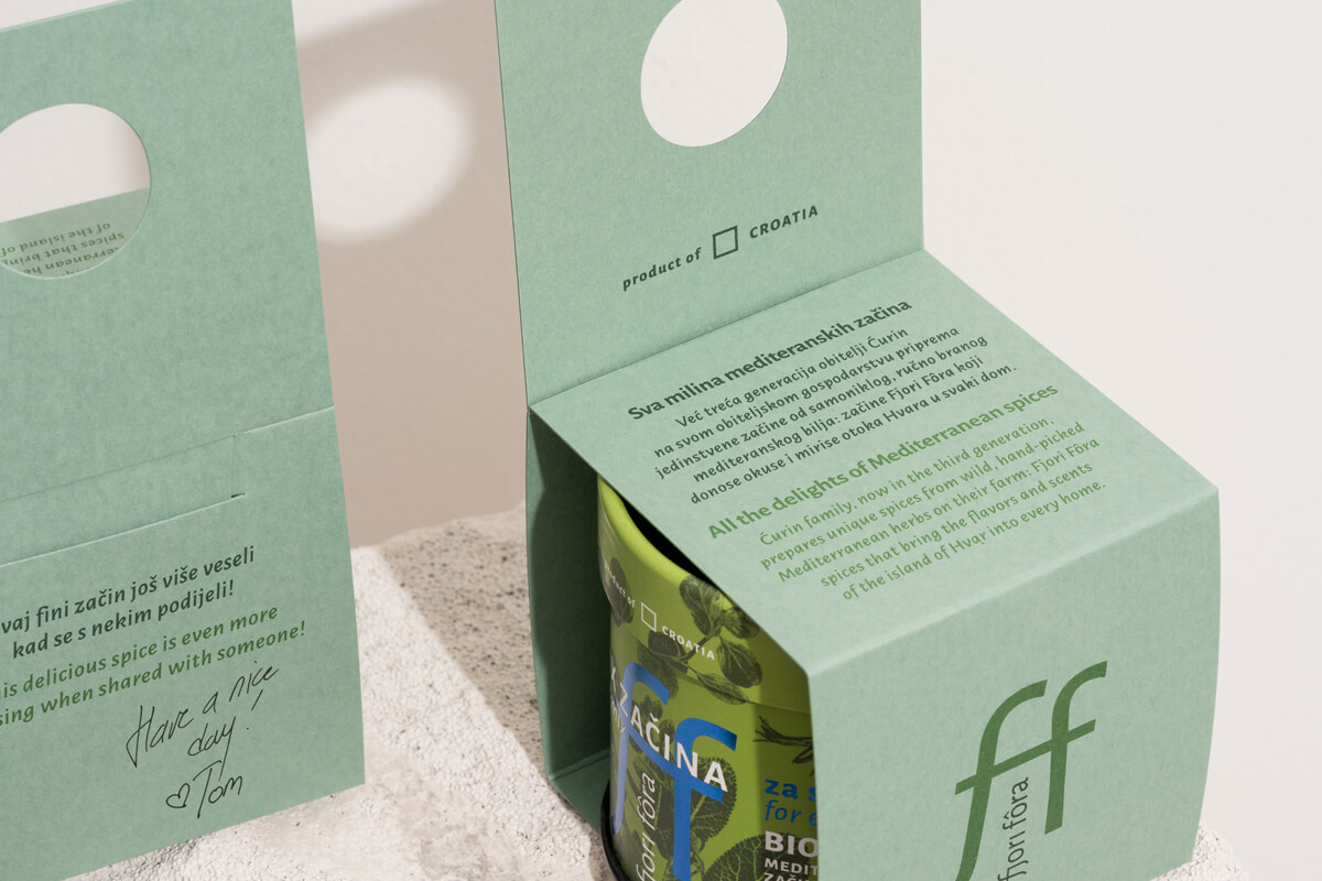The individual packaging of selected Fjori Fôra spices, in a specially designed box with space for a dedication, is an excellent choice for a small-business gift or a thoughtful gesture for a loved one.